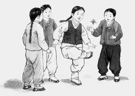 Many traditional games are associated with the Korean New Year. The traditional family board game Yutnori(윷놀이) is still a popular pastime. Traditionally men and boys would fly kites and play jegi chagi (제기차기), a game where a light object is wrapped in paper or cloth, and then kicked in a footbag like manner. Korean women and girls would have traditionally played neolttwigi (널뛰기), a game of jumping on a seesaw (시소), while children spun paengi (팽이).