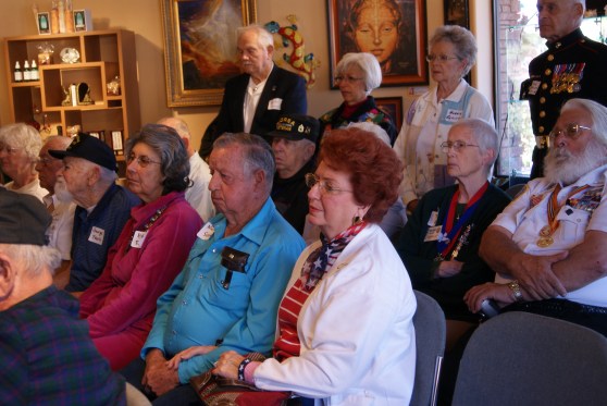 Bud Collette travelled from Payson to attend the event with his wife, Jean. He served in the Army for almost seven years and was in active duty in Korea for 10 months. “I was declared ‘Killed in Action’ for four days,” he recalled. “She (Jean, who was not yet then his wife) thought I was dead”. His unit was ambushed on a hill, and their orders were to leave everything behind and fall back. He recalled racing downhill as the Communist ran up it, right by him. He got lost, but fortunately found another group of GI’s. Four days later he found his base camp and discovered he was reported as killed in action, and that his family had already been alerted. ‘My buddy thought he saw me go down’, he recalled.